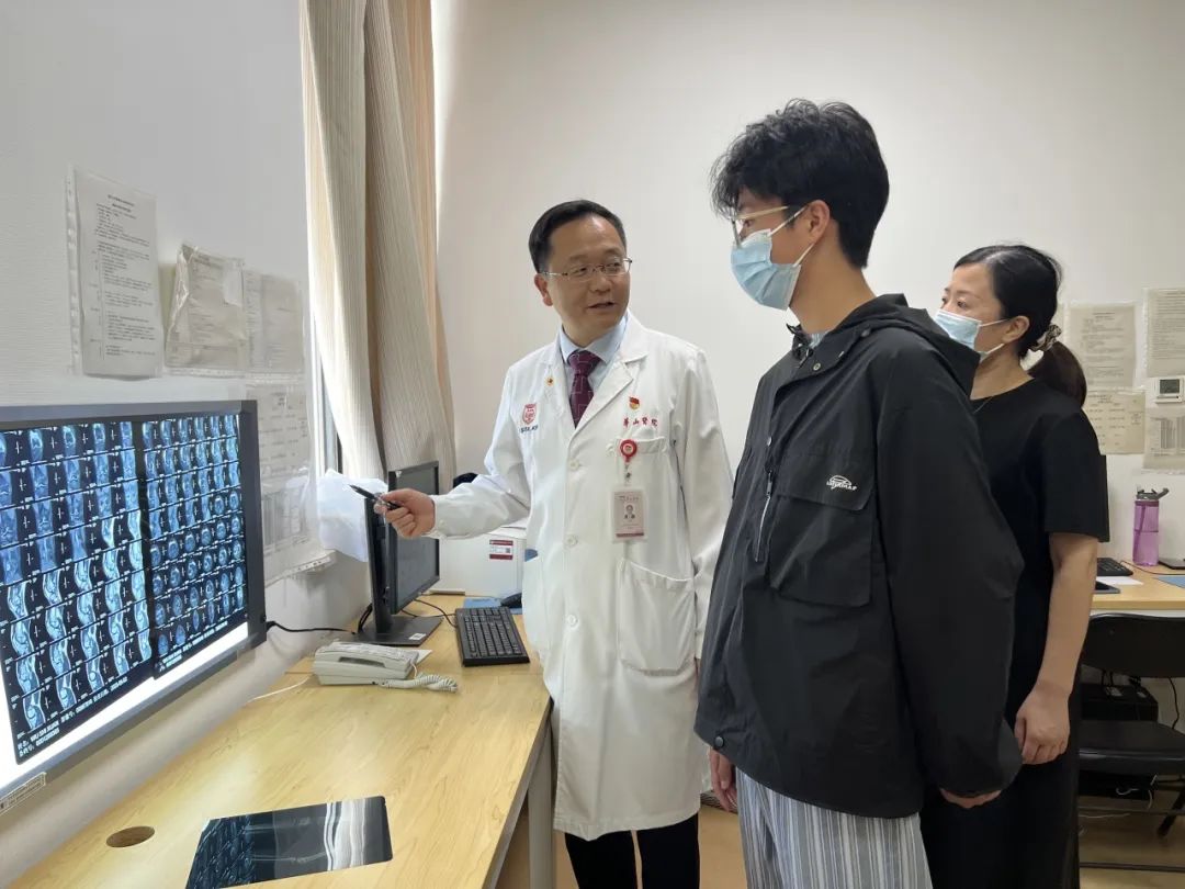 放射科主任医师尹波查看小吴的影像图片作为宝山院区运动医学科开展的首例青少年手术,该病例也推动了青少年运动医学规范化诊疗体系的建设。依托华山医院儿科中心的优势资源,运动医学科团队建立并实施了一套针对青少年患者的标准化诊疗流程,包括涵盖个性化入院宣教、定制围手术期护理方案、儿童专科麻醉评估与情绪安抚、精准手术操作、以及个性化定制的术后康复计划等。
