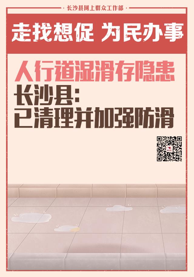 原标题:《人行道湿滑存隐患 长沙县:已清理并加强防滑》
