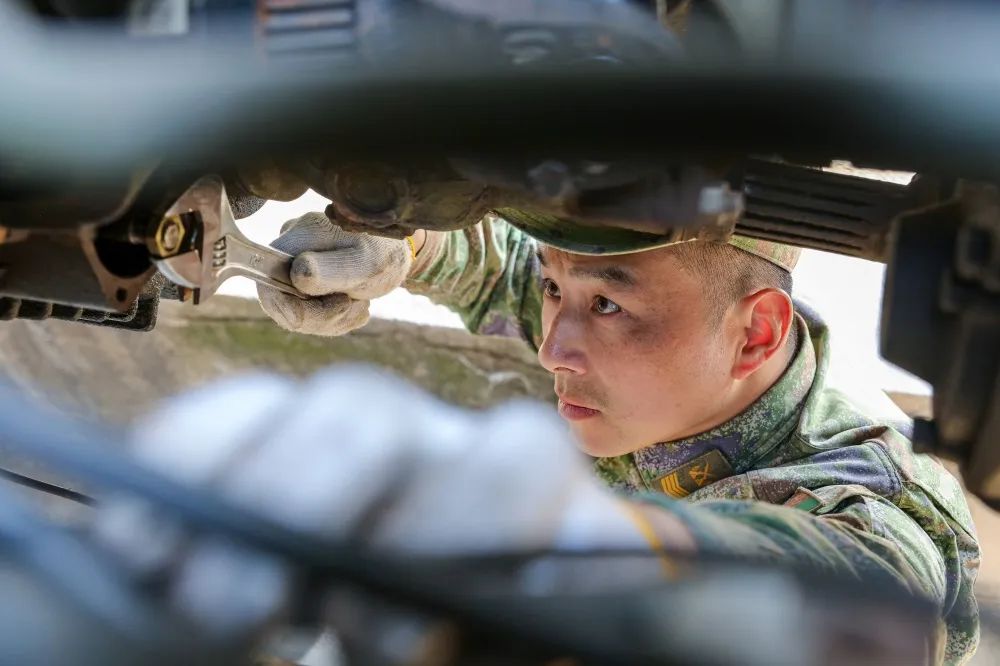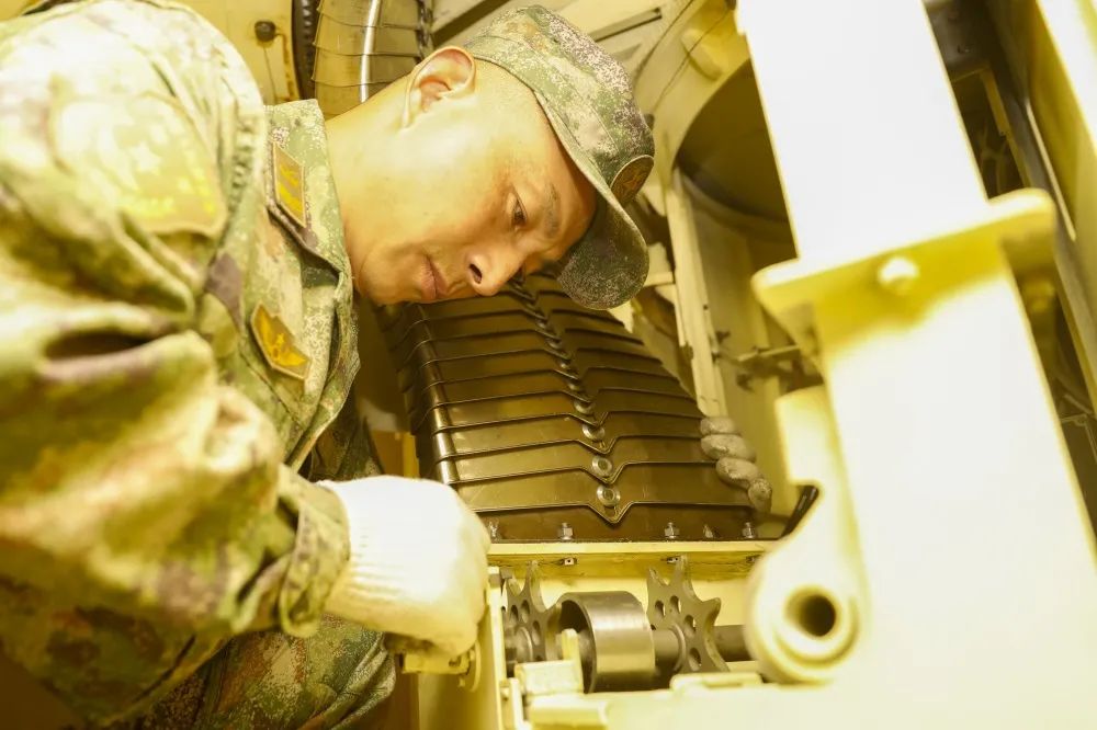 ▲对战车进行维护保养“‘敌机’马上起飞,时间不等人。”张奇戴上手套,忍着钻心的疼痛很快将故障排除。