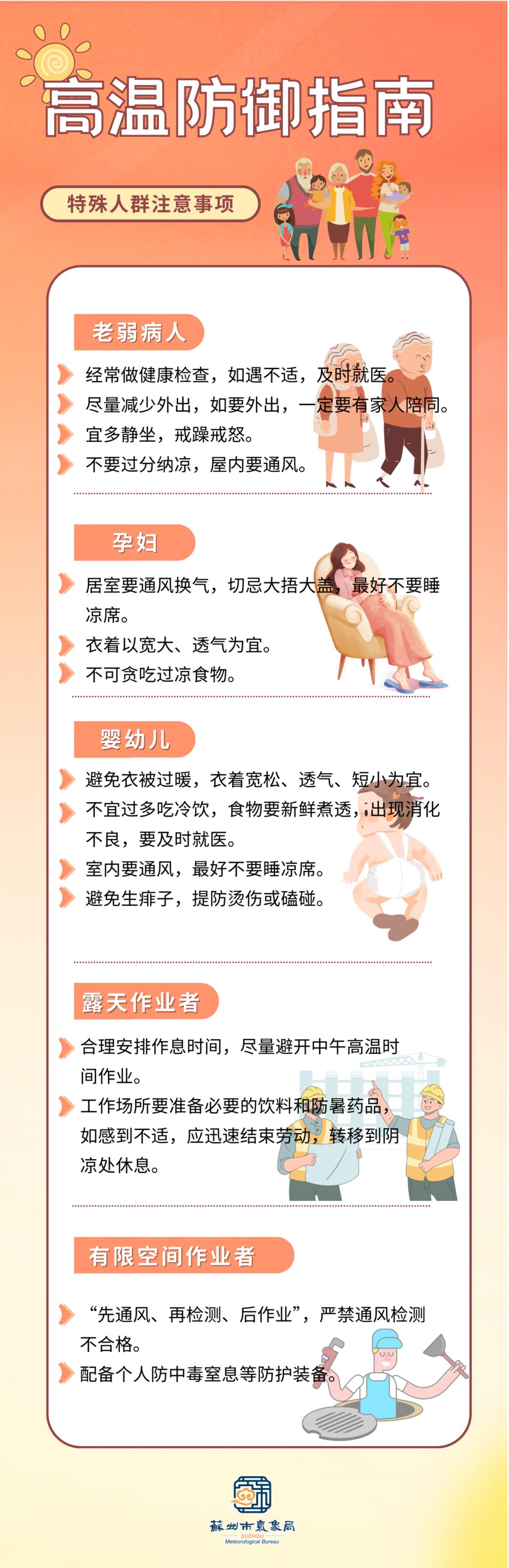 3.老、弱、病、幼人群应当采取必要的防护措施,避免高温时段暴露在热环境中造成身体不适;
