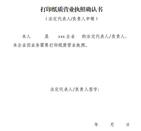2.打印纸质营业执照确认书(法定代表人/负责人申领)