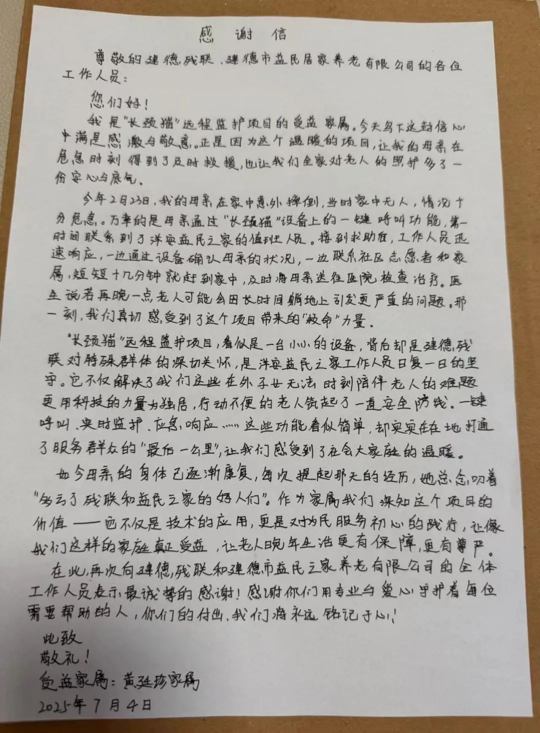 建德温暖!这封手写感谢信,藏着一群人的守护