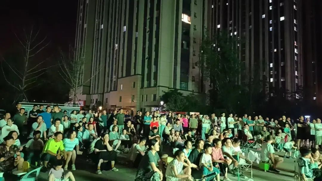 ▲部分小区广场也设置直播大屏,方便住户观赛。