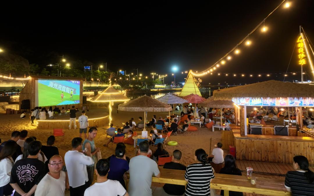 ▲连岛海景足球观赛区,巨型 LED 屏实时播放绿茵激战,山海观赛点燃场外狂欢主场!