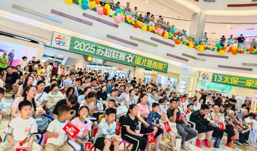 ▲东海水晶城龙头区域,增设超高清电子屏,外地球迷持“苏超”票根+身份证,在指定“苏超特惠店”消费总额立享5折。
