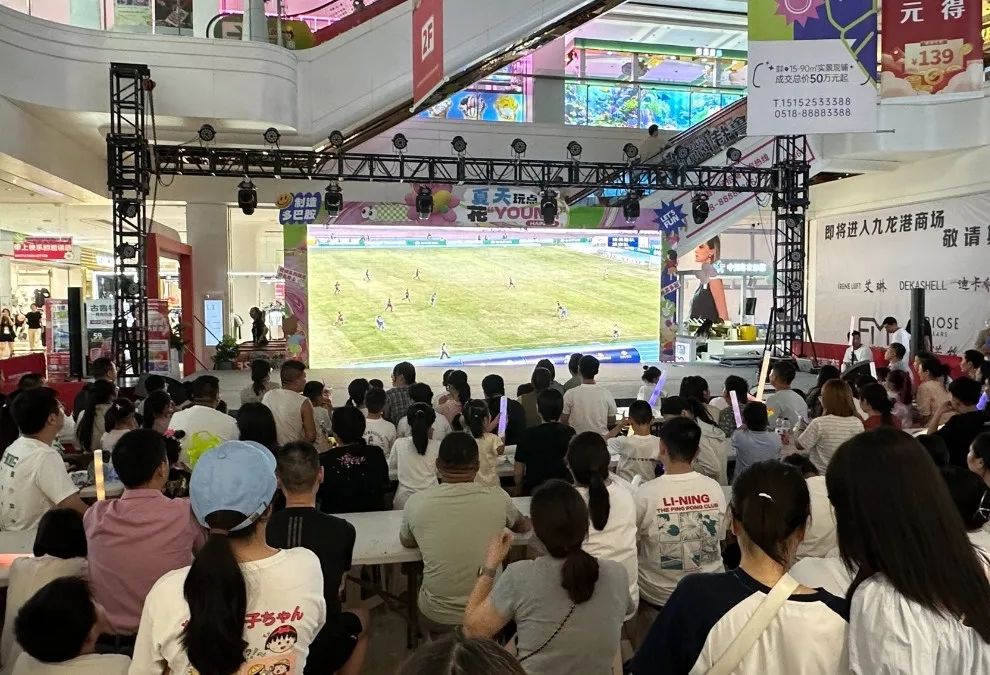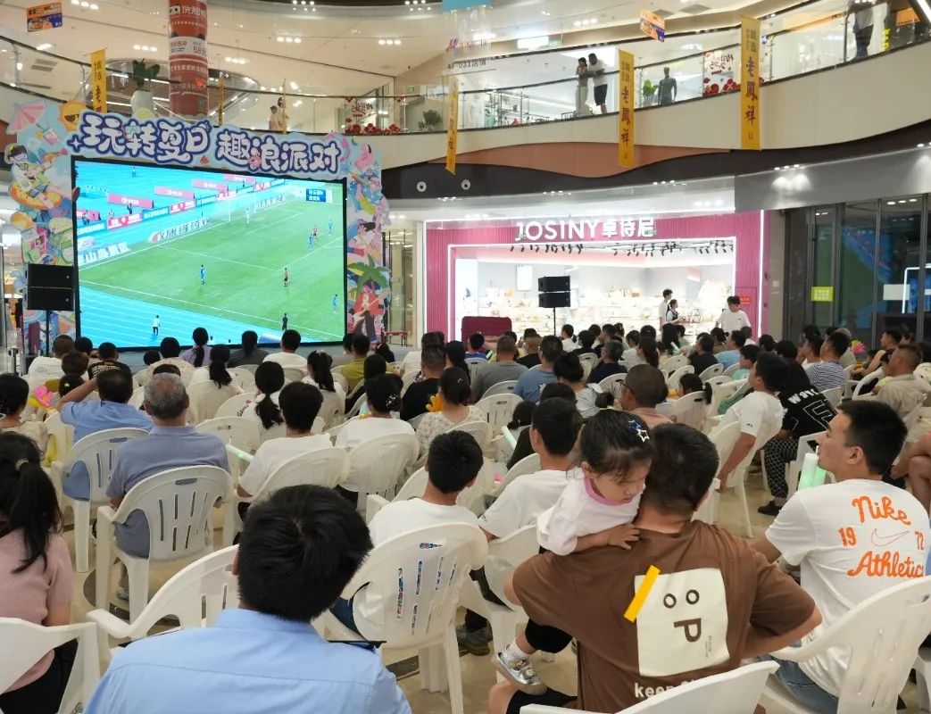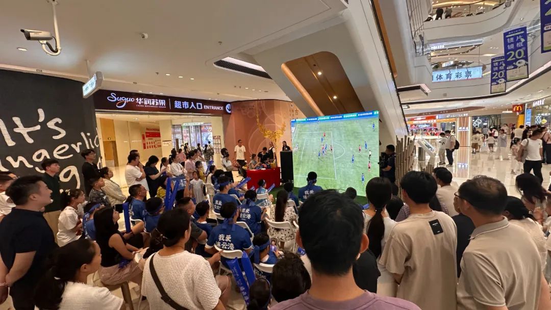 ▲苏宁广场、万达广场、吾悦广场等商业综合体巨幕大屏实时转播赛事,让球迷不错过每一个精彩瞬间。