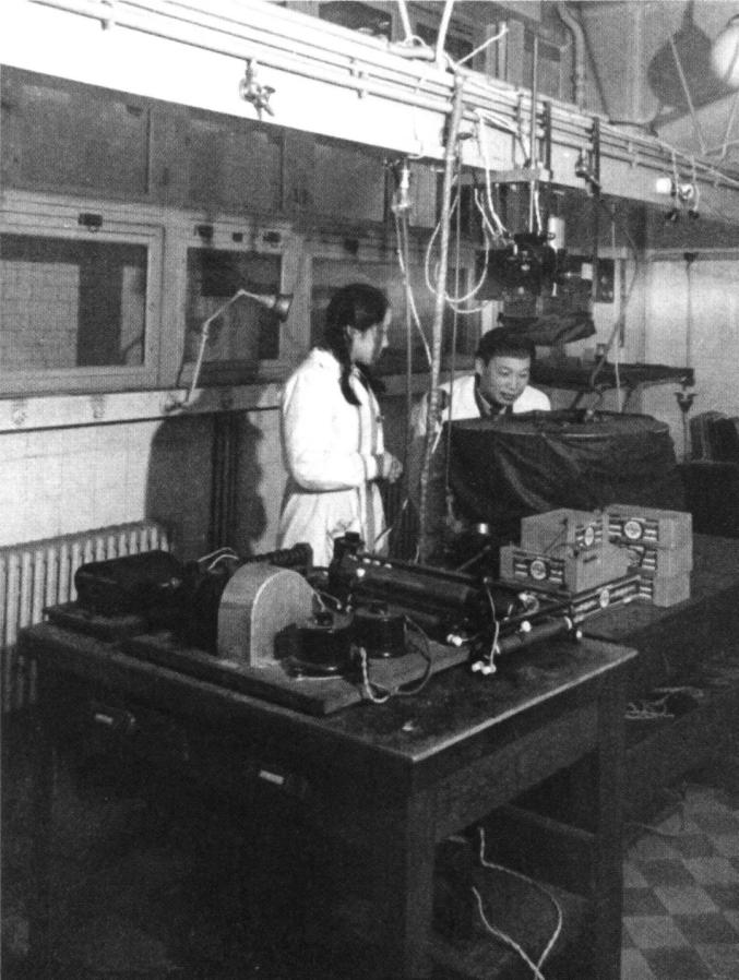 1946年,钱三强与何泽慧在巴黎居里实验室的云雾室设备上做“三分裂”实验1948年