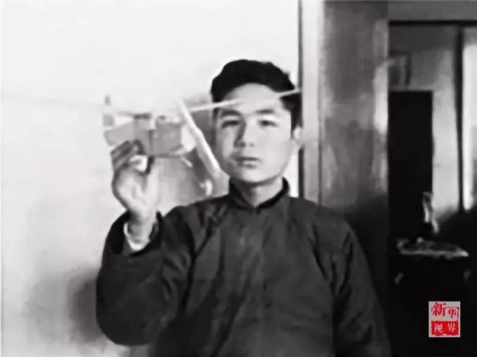 青少年时期的顾诵芬手持自己做的航模。(资料图片)1937年7月7日