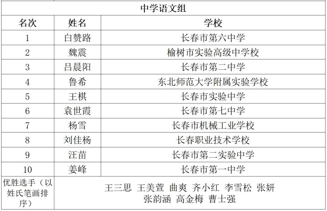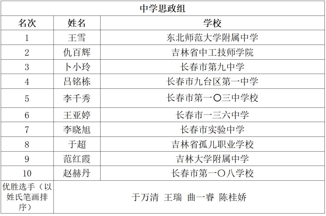 此次竞赛以“上好一门课”为核心理念,设置教学设计、教学展示两部分竞赛内容。比赛着重考验教师对课堂节奏的把控、教学内容的设计和个人专业素养的展现,切实达到以赛促学、以赛促训、以赛促教目的,提升我市中小学青年教师专业化教学和综合育人能力。比赛遵循公平、公正、公开的原则,决赛阶段的评委由在长高校教育专家、省市中小学学科带头人担任,决赛全程录像。经过激烈角逐,来自吉林省第二实验学校的郭卓、长春市第六中学的白赞路、长春市文理高中的王天雷、东北师范大学附属中学的张振兴和王雪分别取得小学组、中学语文组、中学数学组、中学英语组、中学思政组的第一名。