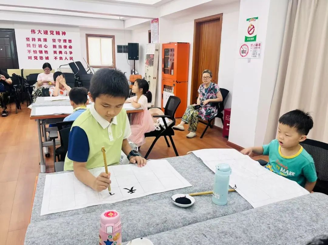这里,不仅仅是一个物理的避暑空间。中心经居民自治商议,专门开辟了“凝‘新’聚力”爱心接力站,并将服务延伸至“三新”家庭。针对孩子们的特点,中心开设了深受喜爱的书法、国画等传统文化特色课程 。每周一次书法、两次国画的安排,让孩子们在翰墨书香中静心、成长 。“我们每次活动都会给‘三新’人员的孩子特意预留名额,并通过街区书记把消息发到他们的群里,让更多人知道。”睦邻中心项目负责人王淑皎介绍道。为了彻底解决“三新”家长的后顾之忧,中心还将开放时间延长至晚上八点 。这份从“托管”到“托心”的转变,让这个小小的驿站,真正成为了孩子们快乐成长、家长们安心工作的坚强后盾。