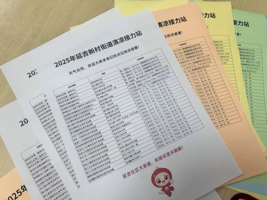 一个点位的用心,折射出的是一个街区的温度。为了让这些夏日服务点位串珠成链、连线成网,延吉新村街道还特别制作了“2025年延吉新村街道清凉接力站地图”。这张地图清晰地标注了辖区内所有的清凉服务点及其开放时间,宛如一张夏日“寻宝图”,指引着有需要的市民,随时都能方便地找到身边的清凉港湾。