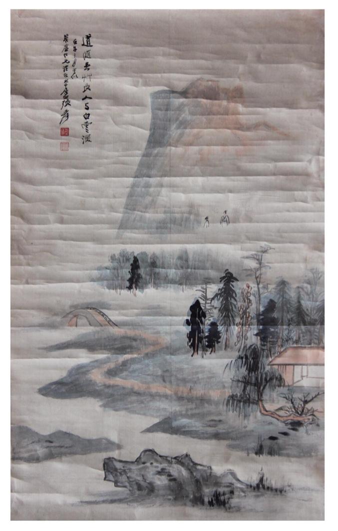 张大千山水卷轴质地:纸本