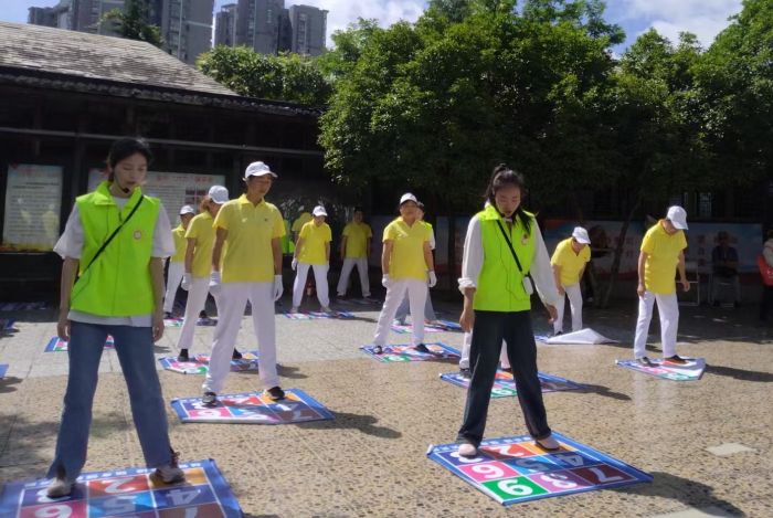 活动现场,医务人员及志愿者以“健康大冒险”为主题,通过健康科普知识讲座、知识测评、游戏互动、观看展板等形式开展,并在现场设置健康知识大闯关、力量训练、益智九宫格、记忆小游戏、迷宫拼图和语言流畅度游戏等趣味关卡。