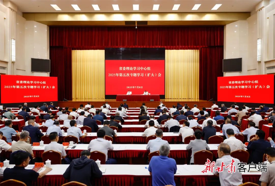 7月8日,省委理论学习中心组在兰州举行2025年第五次专题学习(扩大)会,省委书记、省人大常委会主任胡昌升主持并讲话。新甘肃·甘肃日报记者 孟捷省委理论学习中心组7月8日下午在兰州举行2025年第五次专题学习(扩大)会,省委书记、省人大常委会主任胡昌升主持并讲话。他强调,要深入学习贯彻习近平总书记关于加强和改进民族工作的重要思想,全面贯彻落实习近平总书记在全国民族团结进步表彰大会上的重要讲话和视察甘肃重要讲话重要指示精神,不断铸牢中华民族共同体意识,扎实推动新时代民族工作高质量发展,汇聚起加快全省高质量发展的强大合力,奋力谱写中国式现代化甘肃篇章。