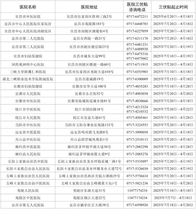 2025年宜昌市开展三伏贴服务的