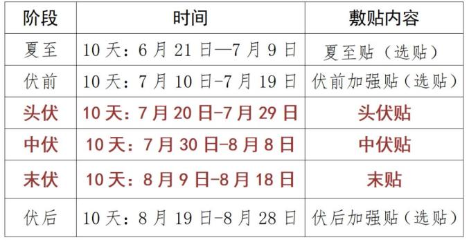 2025年三伏贴参考时间