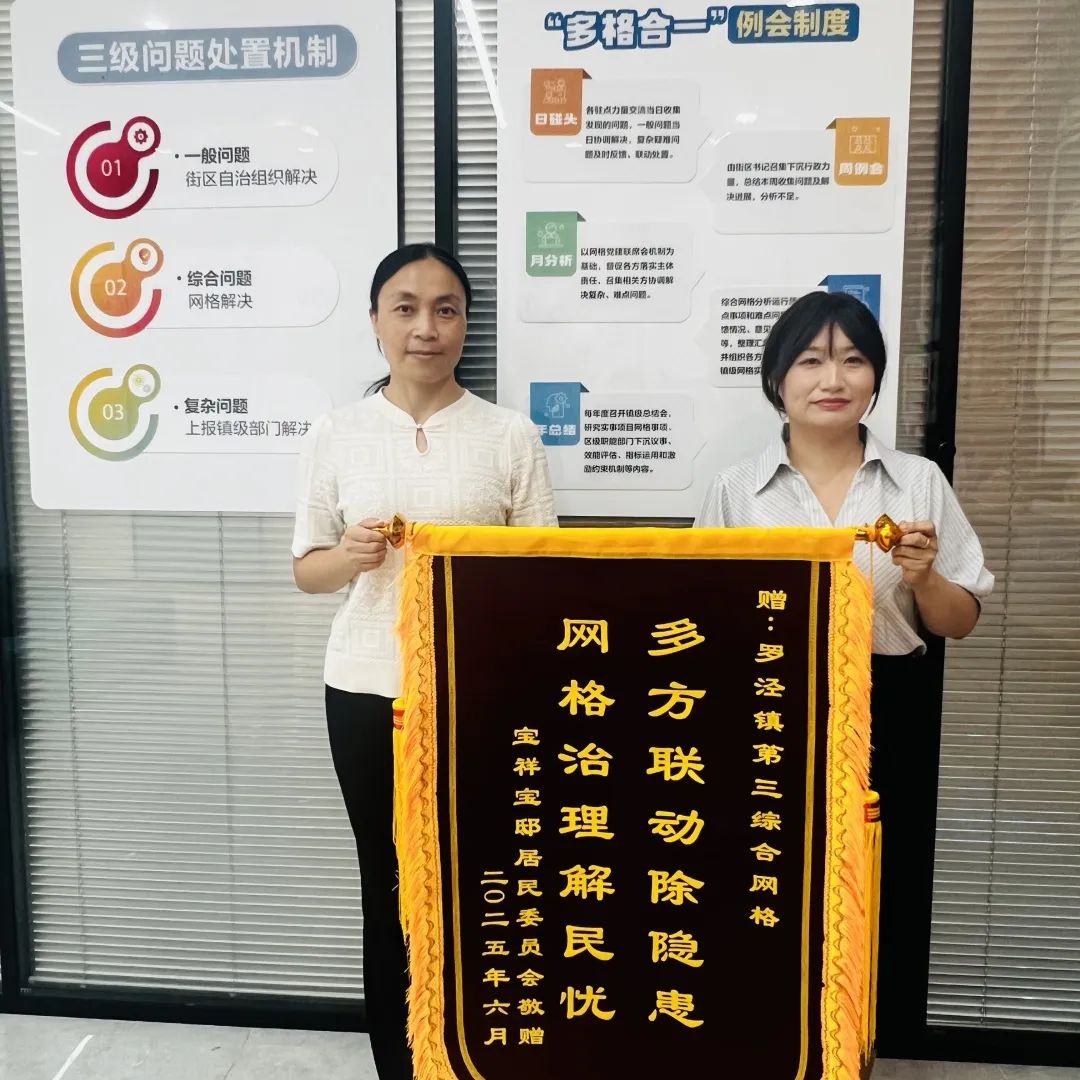 近日,一面饱含谢意的锦旗由宝祥宝邸居民委员会送给了宝山区罗泾镇第三综合网格。“现在车辆开进开出安全多了!心里面特别踏实!”在“社区通”议事厅里,居民们纷纷为第三综合网格的治理行动竖起了大拇指。