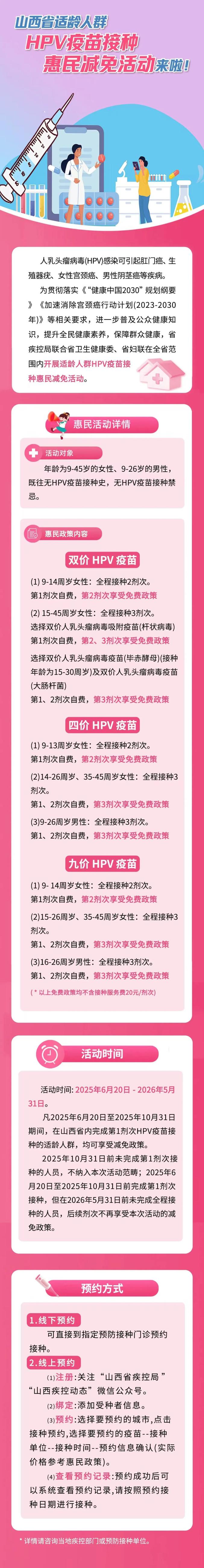 原标题:《山西省适龄人群HPV疫苗接种惠民减免活动来啦!》