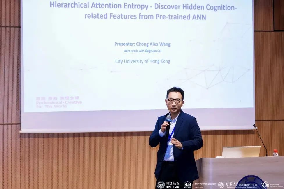 王翀教授主旨演讲题为“分层注意力熵——从预训练人工神经网络中发现隐藏的认知相关特征”(“Hierarchical Attention Entropy - Discover Hidden Cognition-related Feature from pre-trained ANN”),探讨了如何从预训练 (CLIP) 模型的注意力层中提取基于熵的层级特征,以衡量视觉认知的复杂度,并结合社交媒体用户互动和K线图异常收益实证,揭示低至中阶注意力熵正向驱动参与度,而高阶熵则可能抑制市场反应。