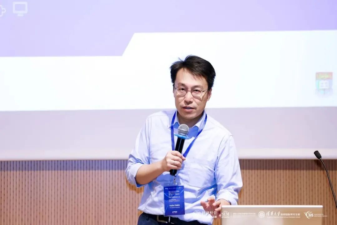 会议主论坛上,清华大学鸿海讲席教授冯娟、香港中文大学伟伦商业人工智能讲席教授张晓泉、香港城市大学商学院资讯系统系主任王翀、内华达大学拉斯维加斯分校信息系统教授Sutirtha Chatterjee、香港大学创新与信息管理教授方钰麟、亚利桑那大学教授葛永、宝盈基金海外投资部副总经理张婷博士等七位海内外知名学者发表了主题报告。同济经管副教授周中允主持会议主旨演讲环节。