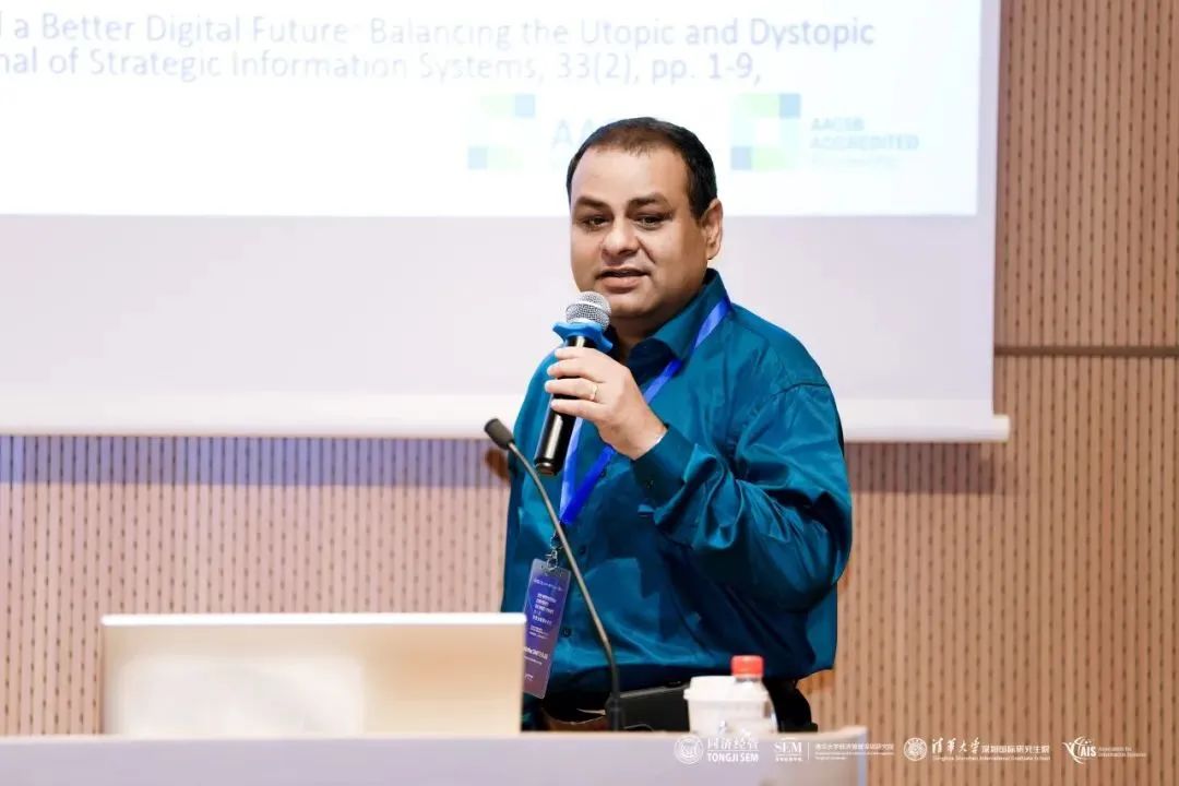 Sutirtha Chatterjee教授进行了题为“数字责任:对金融科技研究与实践的启示”(“ Digital Responsibility: Implications for Fintech Research and Practice”)的主旨演讲,从数字化转型的乌托邦与反乌托邦两面性出发,提出“义务、可靠、问责”三维数字责任框架,并探讨该框架在平衡金融科技潜在风险与推动可持续创新方面的应用意义。