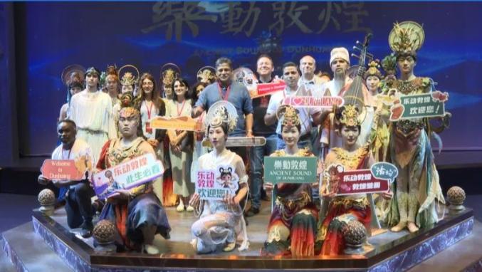 考察团先后来到莫高窟、鸣沙山月牙泉景区、敦煌夜市等地进行参观考察,并观看了《乐动敦煌》。当悠远的古乐与现代舞台光影交织,考察团为“活化”的敦煌艺术所震撼,演出以超越语言的共通美感,生动诠释了不同文明间“各美其美 美美与共”的深刻内涵。