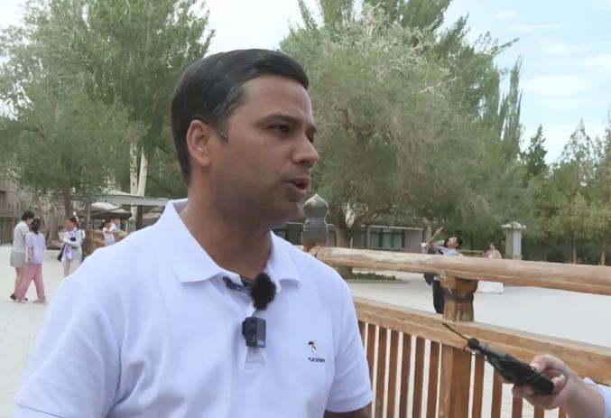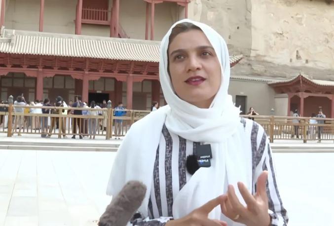北京外国语大学教师魏汉说:“莫高窟是不同文明的交汇点,我认为这里真的非常重要,因为莫高窟是全球壁画艺术最丰富的石窟之一,刚刚我们参观了洞窟里的壁画,甚至看到了古代人的想象力,这些画简直太不可思议了、非常棒。”