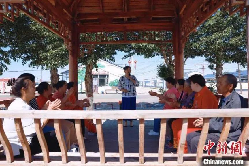 图为董家村文艺爱好者为村民唱歌。 薛强 摄文明打底:好日子透着暖人心