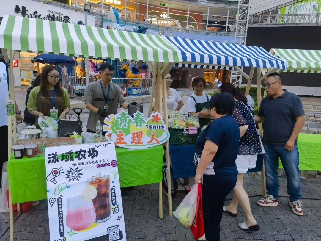 晚上6点,当架子鼓鼓点声响起,夜市正式开市,近40名小小“演奏家”进行音乐快闪。现场,产品展销、便民服务等五大类共32个摊位沿场地整齐排开,其中,望秦啤酒、亭林雪瓜、廊下天母桃等金山本土产品展销区域人气颇旺,不少市民前来选购,体重管理咨询、健康义诊、中医把脉推拿等便民服务也吸引了不少市民。