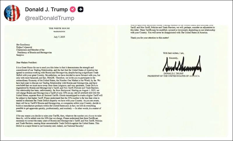 特朗普是9日在其自创社交平台Truth Social上发布上述公开信的。特朗普在信中声称,美国和巴西长期存在不公平的贸易关系,指控巴西对待博索纳罗的方式是“国际耻辱”,50%的关税是美国对巴西现政府“迫害”博索纳罗这位“全世界都高度尊敬的领导人”的回应。