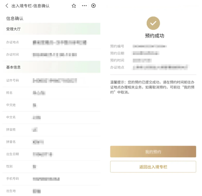 7、再次确认预约信息个人信息后,点击“提交”,按时前往办证地点办理即可。