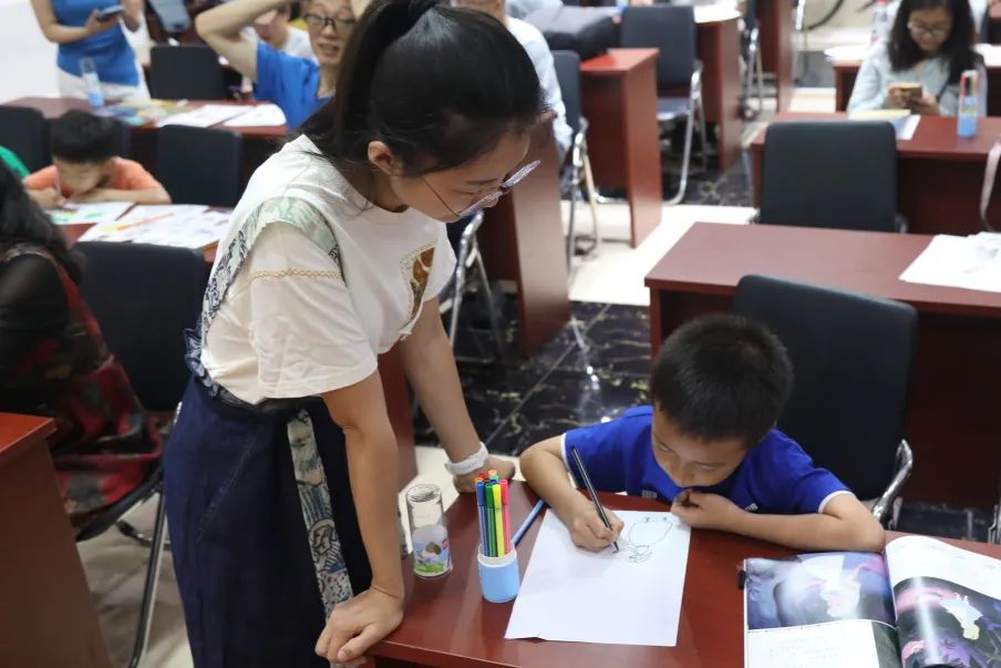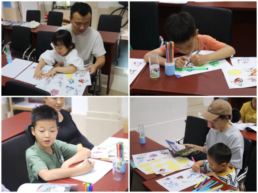随后,崔老师引导每个孩子发挥创意,用贴纸和画笔在A4纸上贴画“仙境”。孩子们天马行空地粘贴、涂画,家长在一旁协助、鼓励,一幅幅充满童真幻想的“仙境”在亲子协作中诞生。贴画环节不仅加深了孩子们对故事的理解,更加深了亲子间的默契。