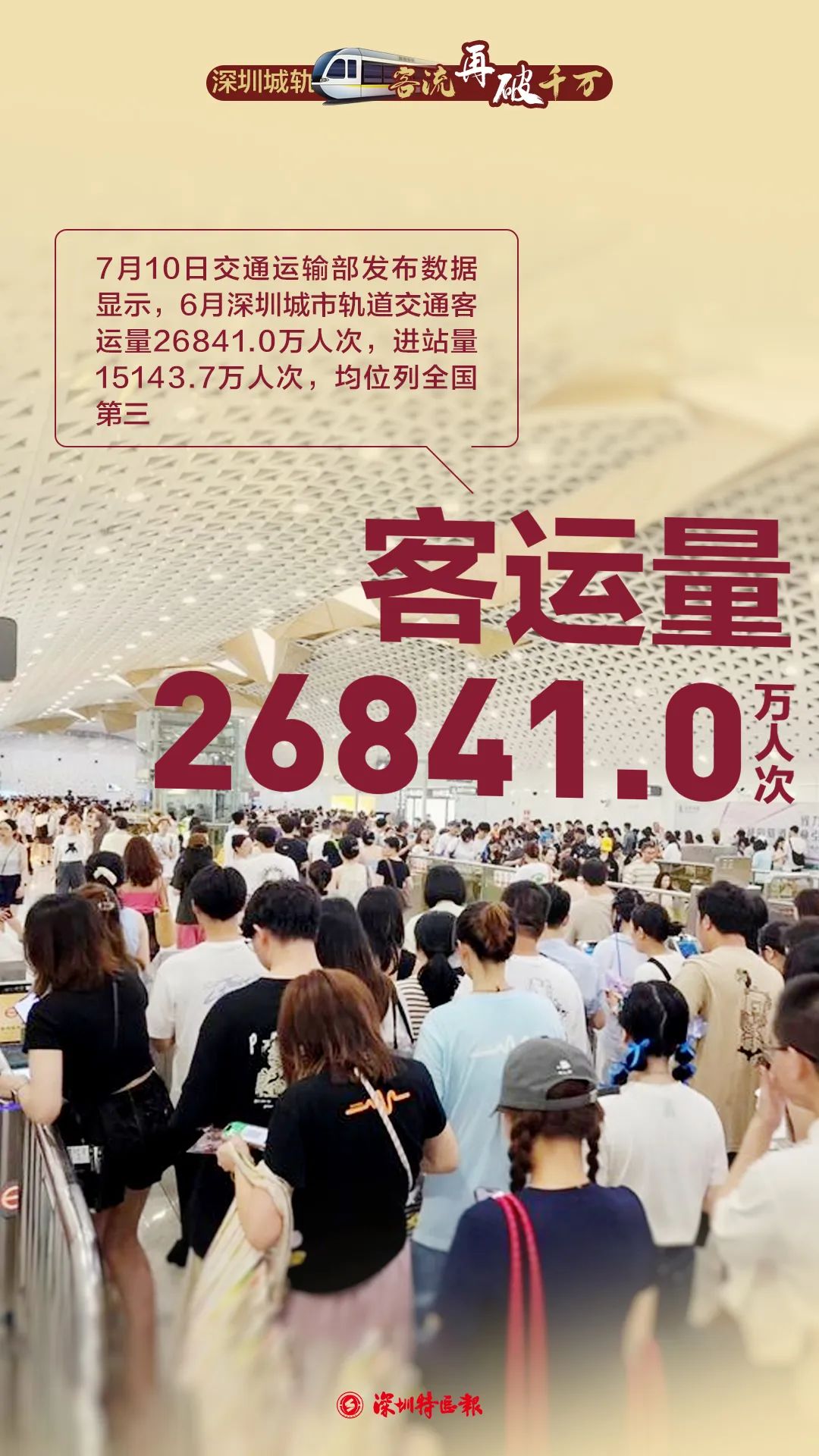 深圳地铁集团相关负责人介绍,在刚刚过去的6月,深圳地铁客运量、进站量均跻身全国前三,站稳国内第一梯队,高涨的地铁“客流值”彰显出城市的人气和经济的热度。