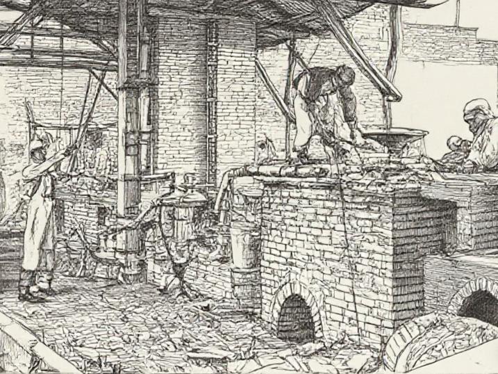 烈火的淬炼开采的矿石被送入焙烧炉,