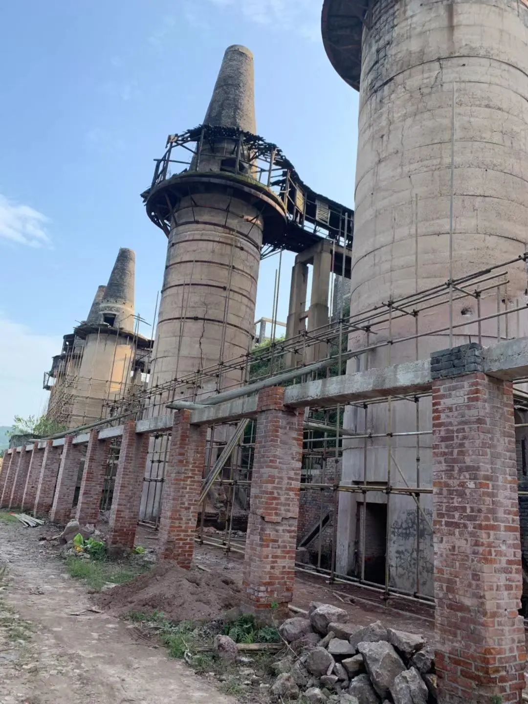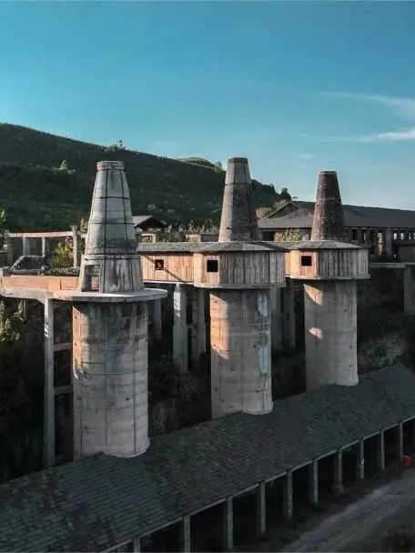 新中国成立后,矾山焙烧技术迎来重大变革:从传统的"烧炮子"升级为胆窑,1959年试验竖窑焙烧并获得成功。1964年,焙烧大竖窑工程启动,窑体高30米(含5米基座、15米焙烧段和10米烟囱),内外径分别为2米和3米,采用耐火砖夹20厘米保温砂的创新结构。至1968年,西山脚下的八大窑已巍然矗立,形成壮观的工业景观。