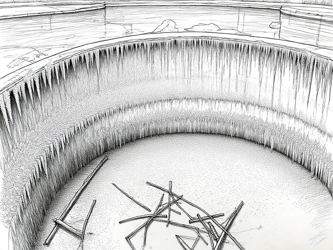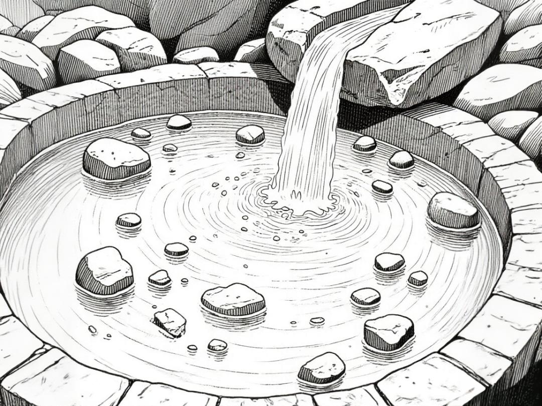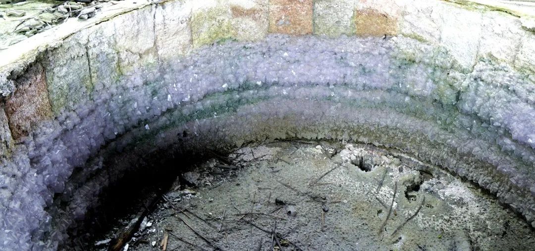 池壁绽放出晶莹的"矾花"。