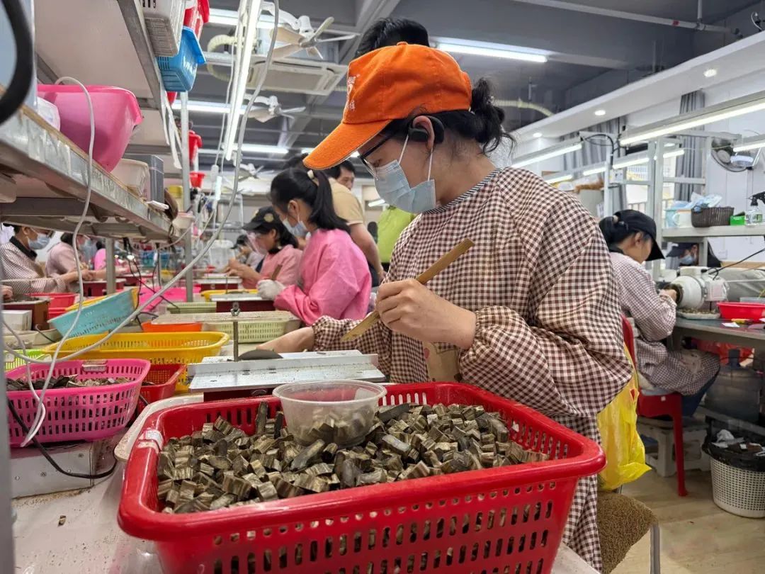 工人在加工沉香产品。与此同时,电白在品牌化建设上多点开花,全力提升沉香品牌影响力。目前,电白正全力申报“电白沉香”国家地理标志和证明商标,划定保护范围为电白境内全域,全覆盖申请注册“奇楠”和其近音字普通商标,构建“区域品牌+企业品牌”矩阵。全区注册沉香商标20多个,君元沉香主打“香韵电白”系列香品、瑜丰沉香的精油产品畅销全国,“冼府甄选”沉香走进北京民俗博物馆。2025年1月,电白沉香博览城被认定为产业型跨境电子商务园区;今年4月,电白沉香原料首单50公斤订单出口到沙特,标志着电白沉香正式进入国际市场,让沉香“香”飘世界成为现实。