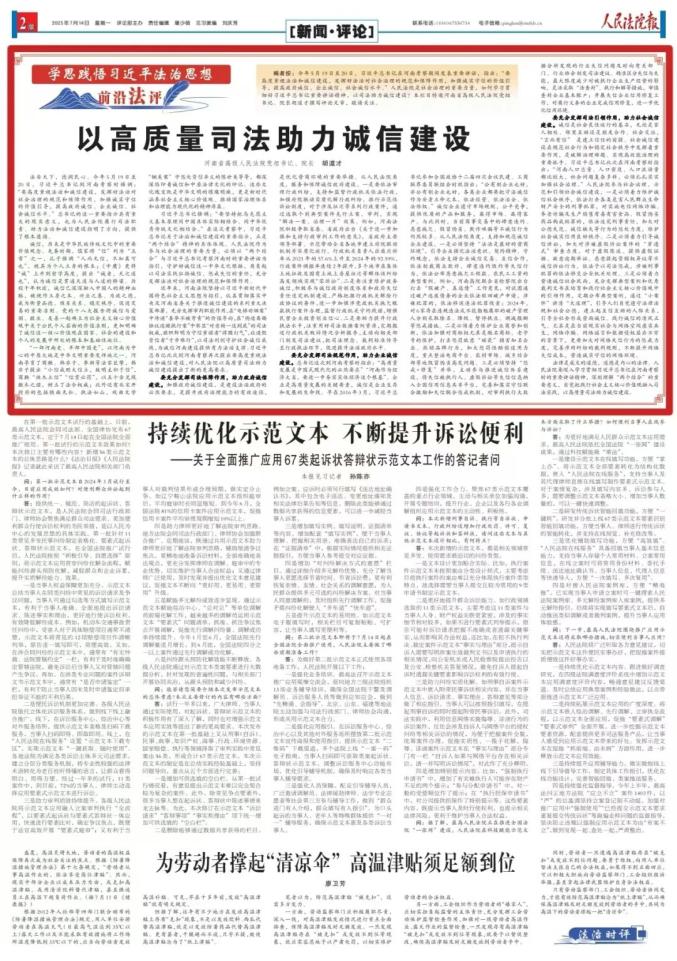 原标题:《【人民法院报】以高质量司法助力诚信建设》