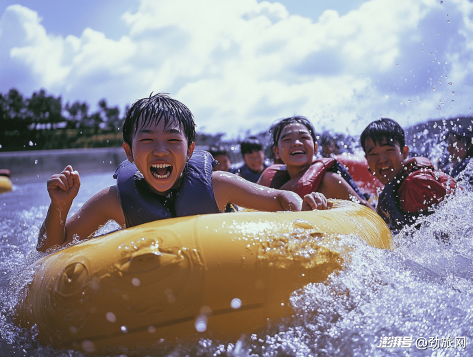 还有景区从场景着手打造漂流项目。劲旅君最近看到一个主打夜间灯光秀特色的景区漂流项目,漂流时间并不长,但是漂流人工河道及周边都被布置了灯光秀以亮化项目,配合上音乐和演艺,同样体验感非常好。还有景区主打儿童亲子室内漂流,专门为儿童甚至幼童提供人工漂流体验,虽然这种漂流项目看似不刺激也不好玩,但是在幼儿群体中却是必玩项目,同样让家长心甘情愿买单。