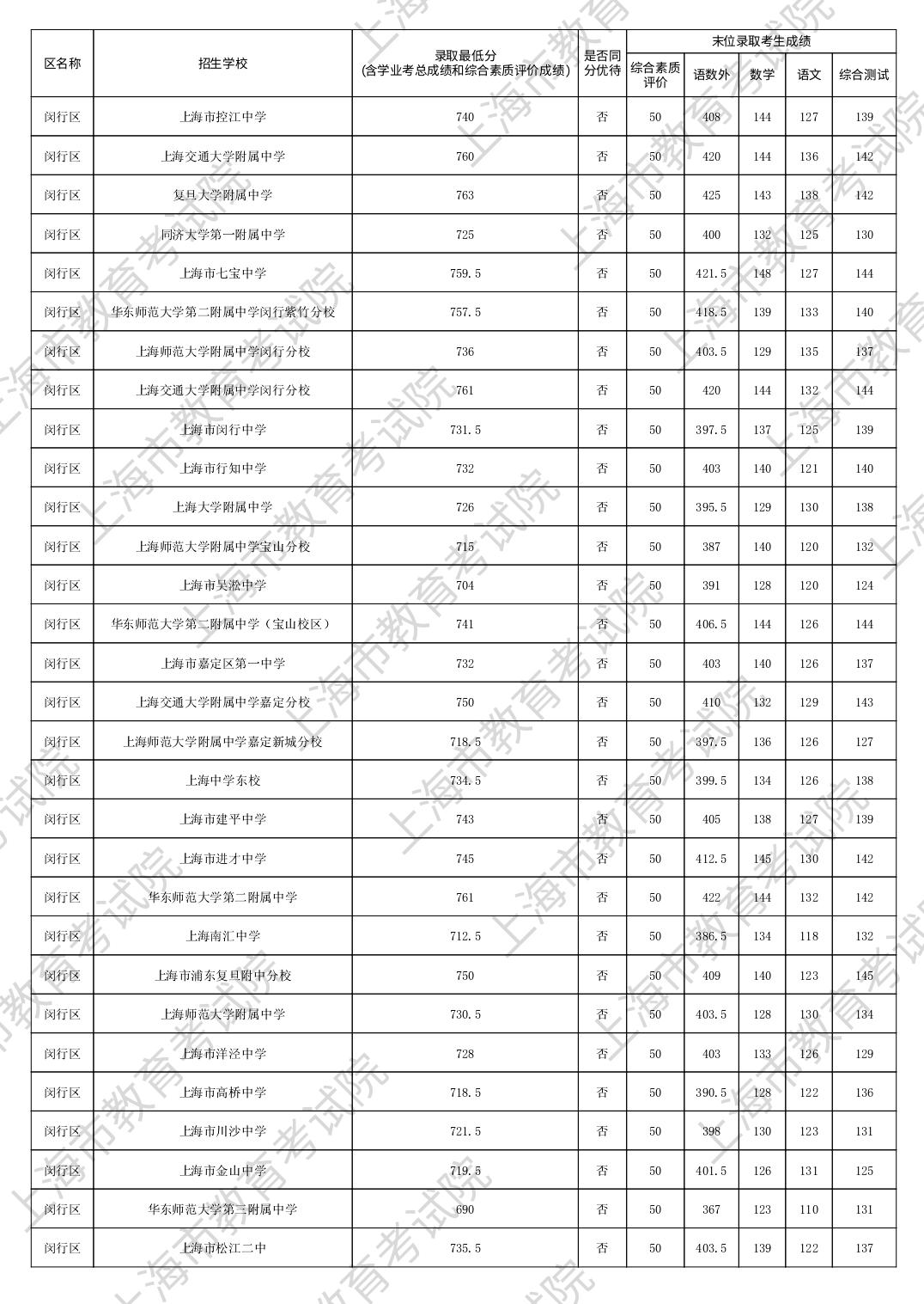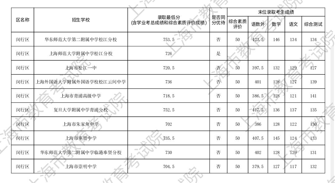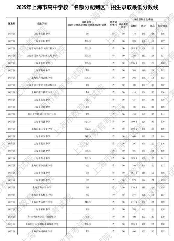 2025上海中考闵行区“名额分配到区”最低录取分数线公布,录取查询通道→