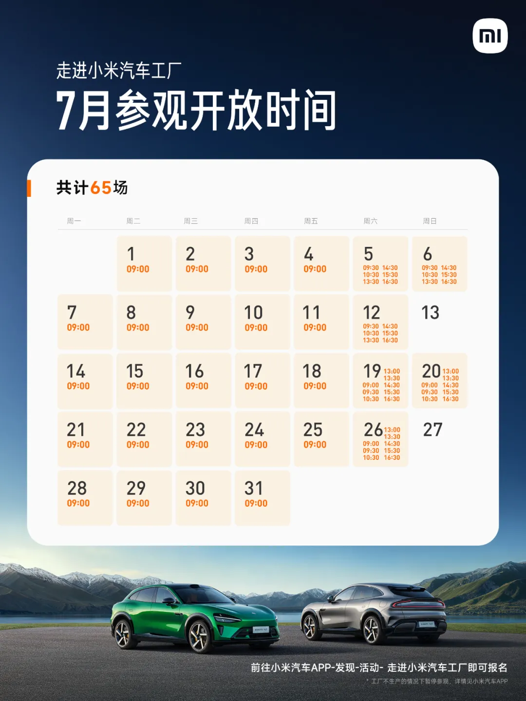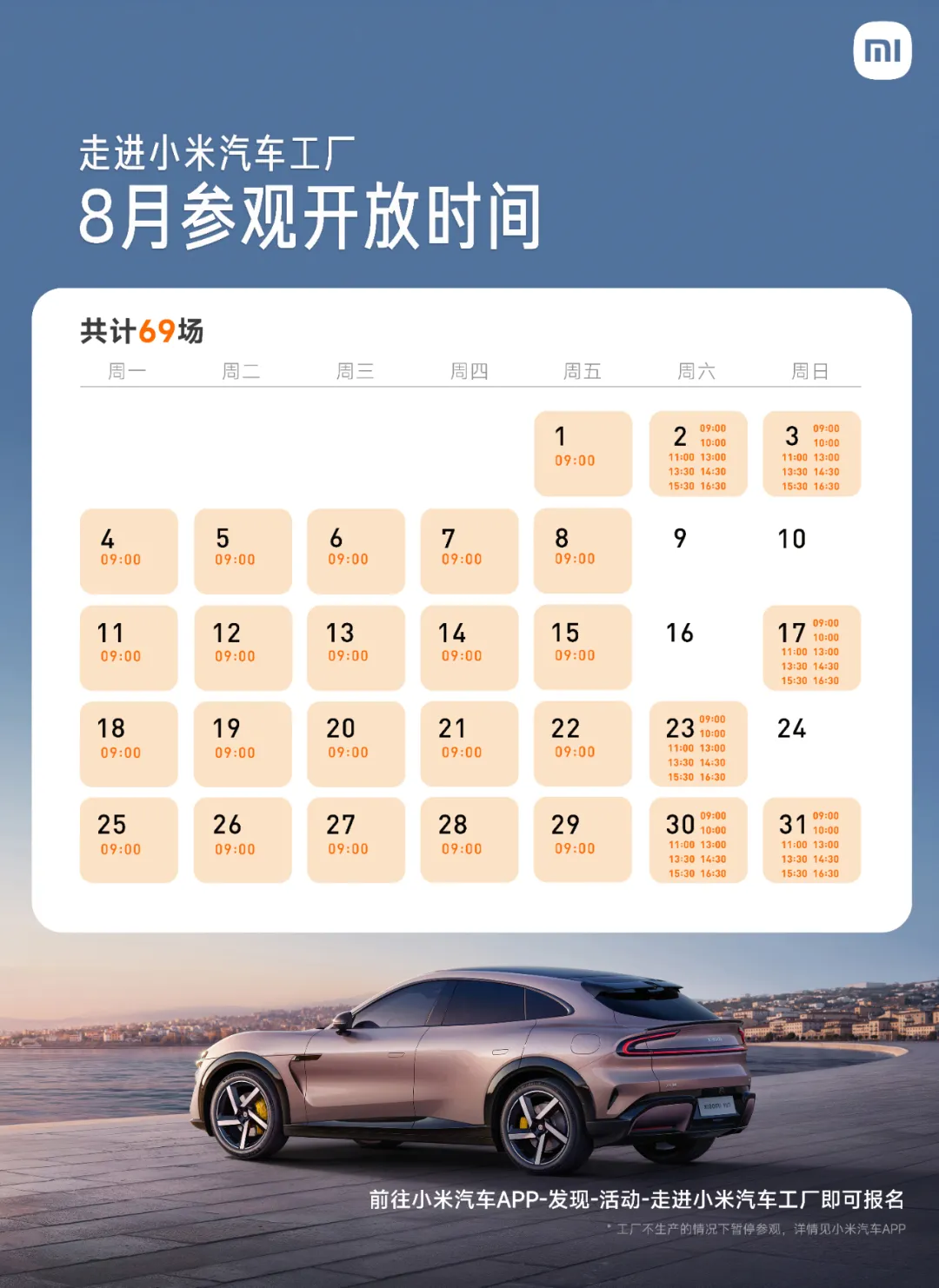 暑期场次加码!小米汽车工厂8月开放69场(附时间)