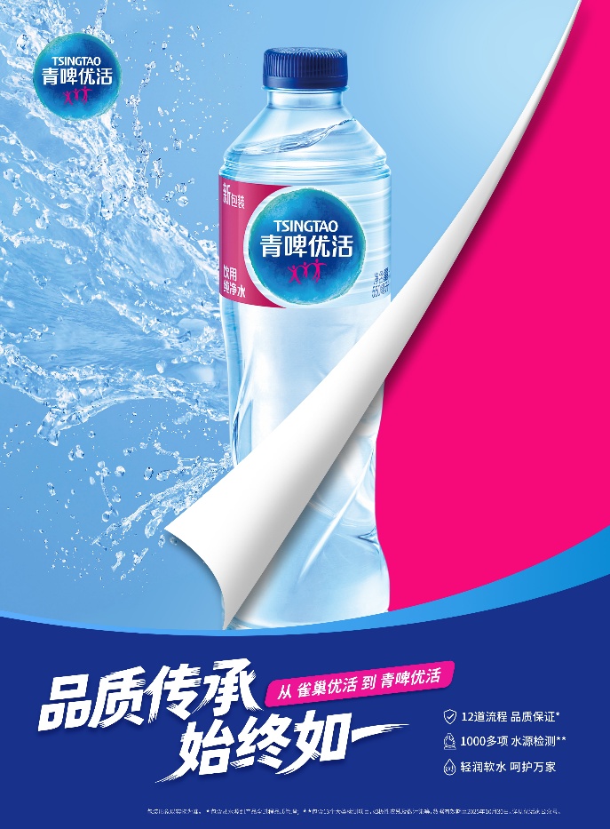 追求更优是张艺兴的注脚,同样也是青啤优活不断追求品质的写照。青啤优活系列产品,采用严苛的12道品质保证流程*,1000多项水源质检**,品质传承,始终如一,正是这样对品质的执着,才能保证“好水到家 轻润呵护”。张艺兴从出道逐步成长为全能艺人,正是凭借一直以来对艺术的执着追求和对自我的不断突破。在对尽善尽美的追求上,青啤优活和代言人张艺兴都有着长期的坚持。