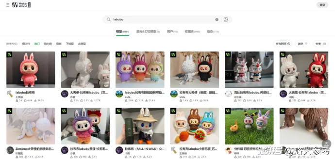 此外,据极客网报道,在开源平台,也有爱好者已经通过销售3D打印Labubu模型获利高达十余万元。