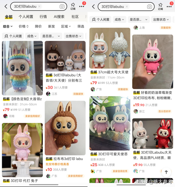 官方渠道收货周期长,黄牛渠道溢价收又不值,这让不少心急的labubu爱好者们瞄向了3D打印,来作为平替。