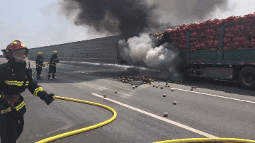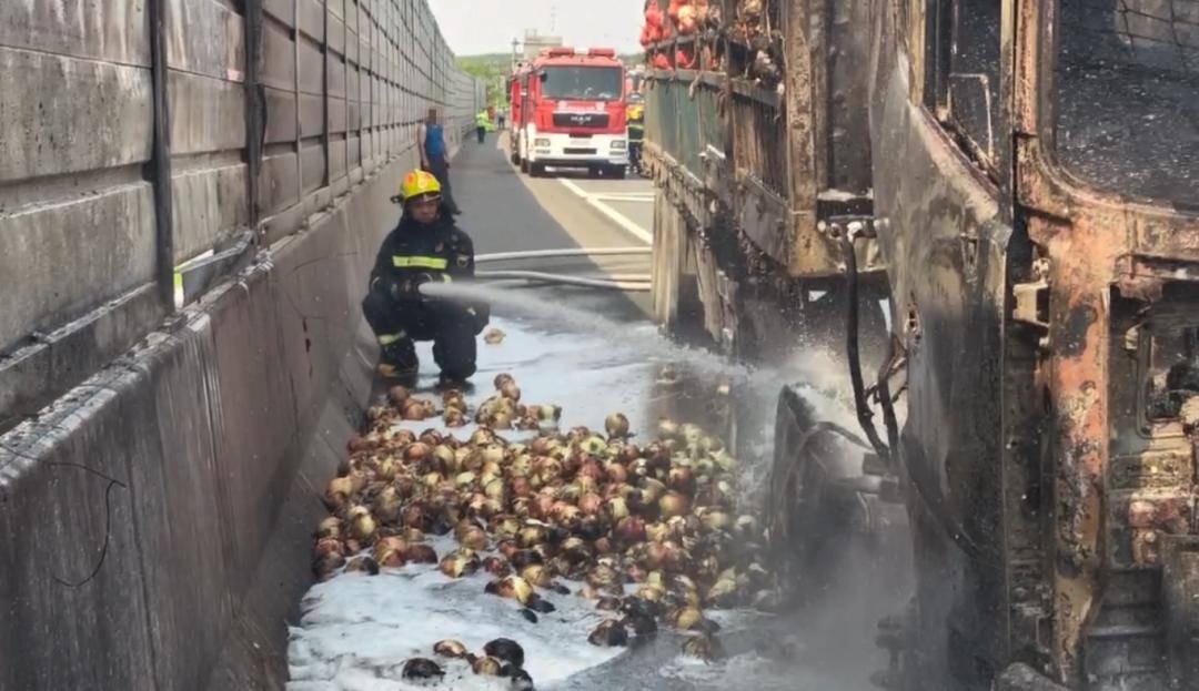 原标题:《高速上一满载30吨洋葱货车自燃!洋葱撒满高速……》