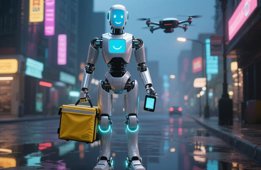 其中,自动配送车和无人机等载具机器人已有一定程度的商用。数据显示,截至 2024 年底,美团无人机已开通 53 条航线,累计配送订单超 45 万单;自动配送车累计配送近 500 万单,服务数百个社区的配送需求,自动驾驶里程占比 99%。此外,美团通过投资高仙机器人、云迹科技等企业,进一步拓展酒店清洁、楼宇配送、医疗护理等多元化应用场景。