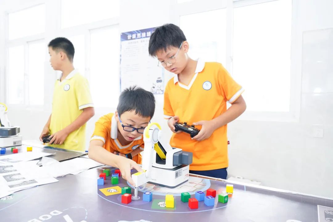 “硬件编程方式多样,我们从易到难设计了多阶段社团活动,可满足全学段学生的深度编程语言学习。”李馨娴老师说,学生在平时学校信息科技课程、课后延时社团进行基础计算机知识、编程知识学习后,优中选优加入社团,按照每年新赛季赛项要求完成机器人的组装、拼搭、编程、调试,在问题解决的过程中发展计算思维,提升数字素养与技能。