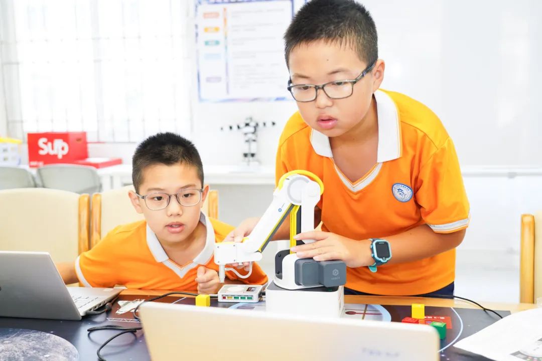 “每次完成任务都很有成就感,我很喜欢。”五年级学生江晟昊热爱科技,从三年级起积极参与校内的社团活动。三年级加入数字创作社团,四年级加入图形化编程社团,目前江晟昊是机器人社团中的一员,并将参与下周举行的比赛。从基础的知识学习