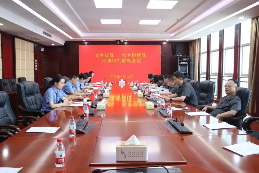 为进一步深化法检司法协作,凝聚司法合力,提升刑事案件办理质效和司法公信力,7月14日,安乡法院、安乡检察院刑事审判联席会议在安乡法院召开。安乡法院党组书记、院长王庆全,安乡检察院党组书记、检察长饶作志出席会议,两院分管院领导、相关部门负责人及业务骨干参加会议。