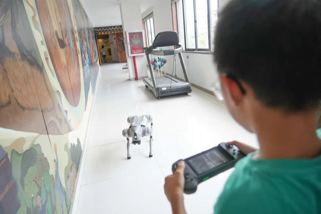 机器狗C位出道! 老师遥控一按,“铁疙瘩”秒变“舞王”!跳跃、拉伸、后空翻...酷炫的“机械舞”瞬间圈粉!孩子们抢着上手,操控传感手柄指挥狗狗:弯腰穿桩、高台跃起、原地蹦迪,玩的就是心跳!